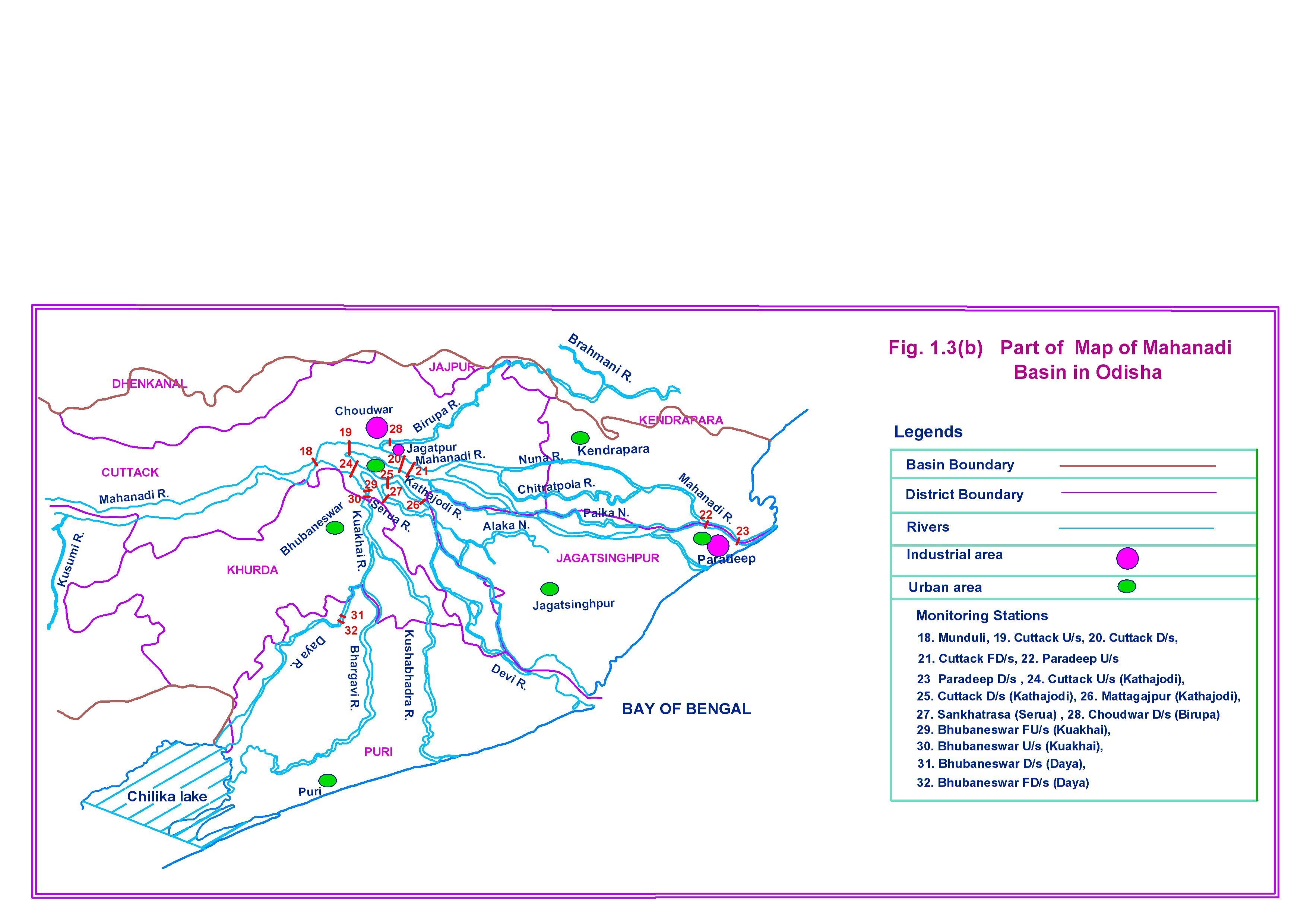 State Pollution Control Board, Odisha in collaboration with Central Pollution Control Board is executing National Water Quality Monitoring Programme (NWMP) at 98 locations in the State. Out of which 64 locations are river 3 are canal, 2 are lake, pond 6, sea 3, STP/wastewater are 3 (monthly) and groundwater 15 (half yearly). During 2017, additional 110 monitoring stations were sanctioned by CPCB.